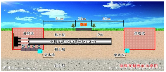 頂管施工就是非開挖施工方法,是一種不開挖或者少開挖的管道埋設(shè)施工技術(shù)。頂管法施工就是在工作坑內(nèi)借助于頂進(jìn)設(shè)備產(chǎn)生的頂力,克服管道與周圍土壤的摩擦力,將管道按設(shè)計的坡度頂入土中,并將土方運走。一節(jié)管子完成頂入土層之后,再下第二節(jié)管子繼續(xù)頂進(jìn)。其原理是借助于主頂油缸及管道間、中繼間等推力,把工具管或掘進(jìn)機(jī)從工作坑內(nèi)穿過土層一直推進(jìn)到接收坑內(nèi)吊起。管道緊隨工具管或掘進(jìn)機(jī)后,埋設(shè)在兩坑之間。