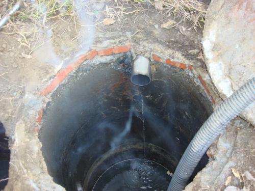 4、再用鐵鉤把井蓋打開,打開后在用消防水往每個井口里沖洗半個小時左右。這樣能使化糞池里的沼氣減少很多。